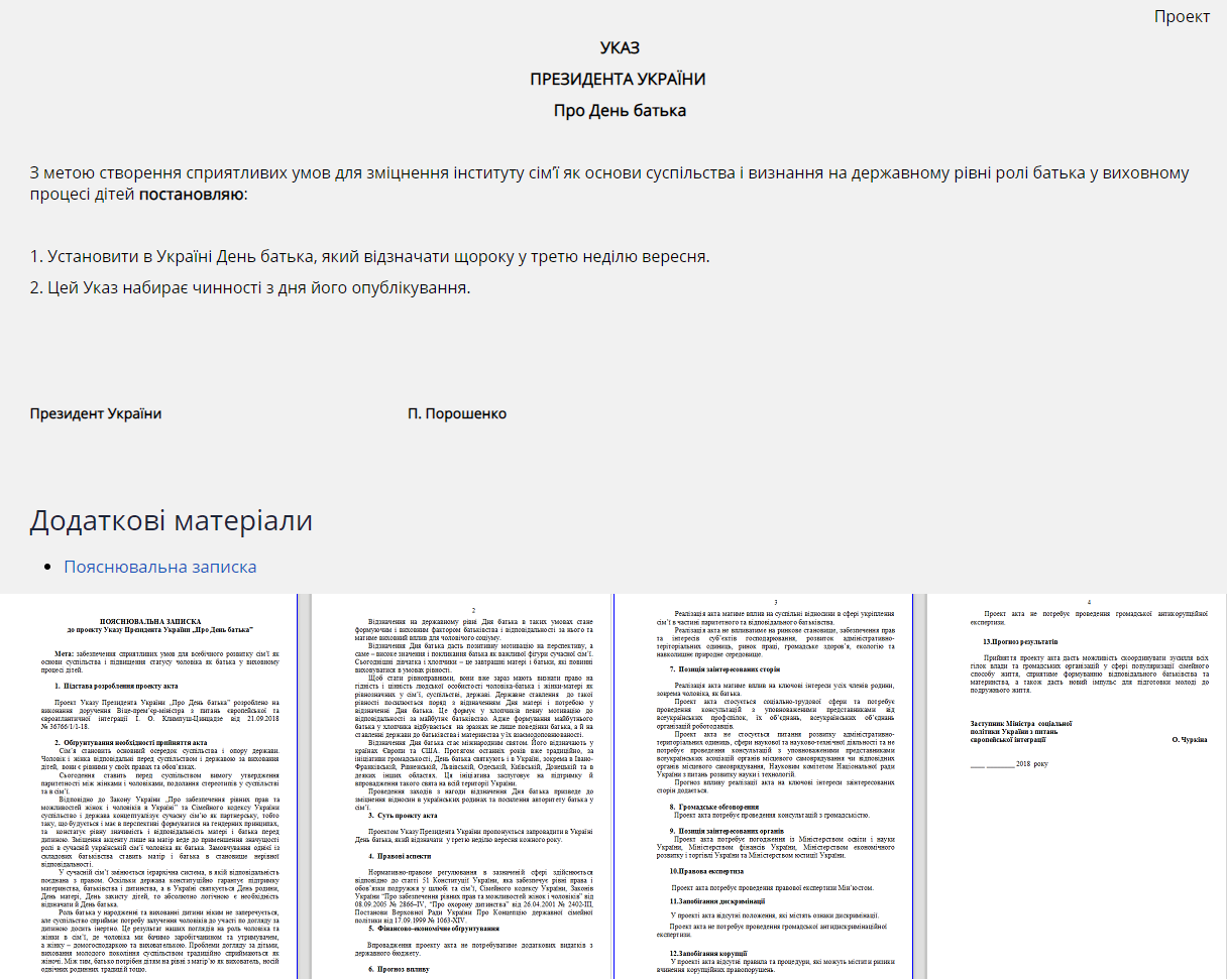 ПРОЄКТ УКАЗУ ПРЕЗИДЕНТА УКРАЇНИ ПРО "ДЕНЬ БАТЬКА"